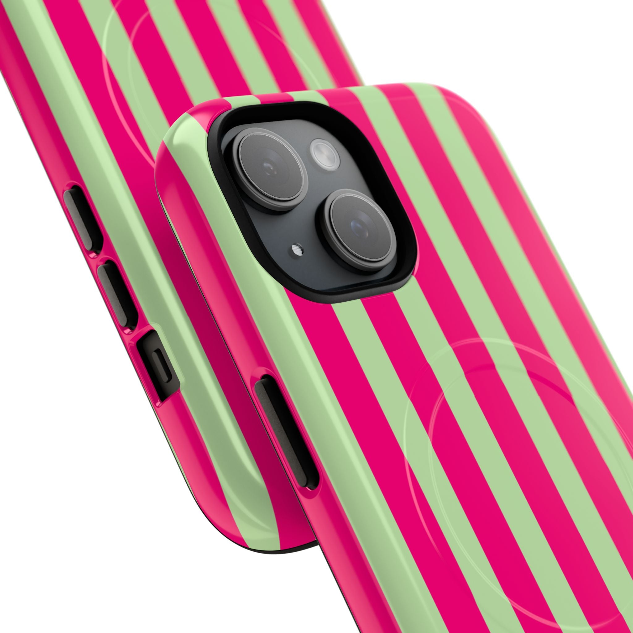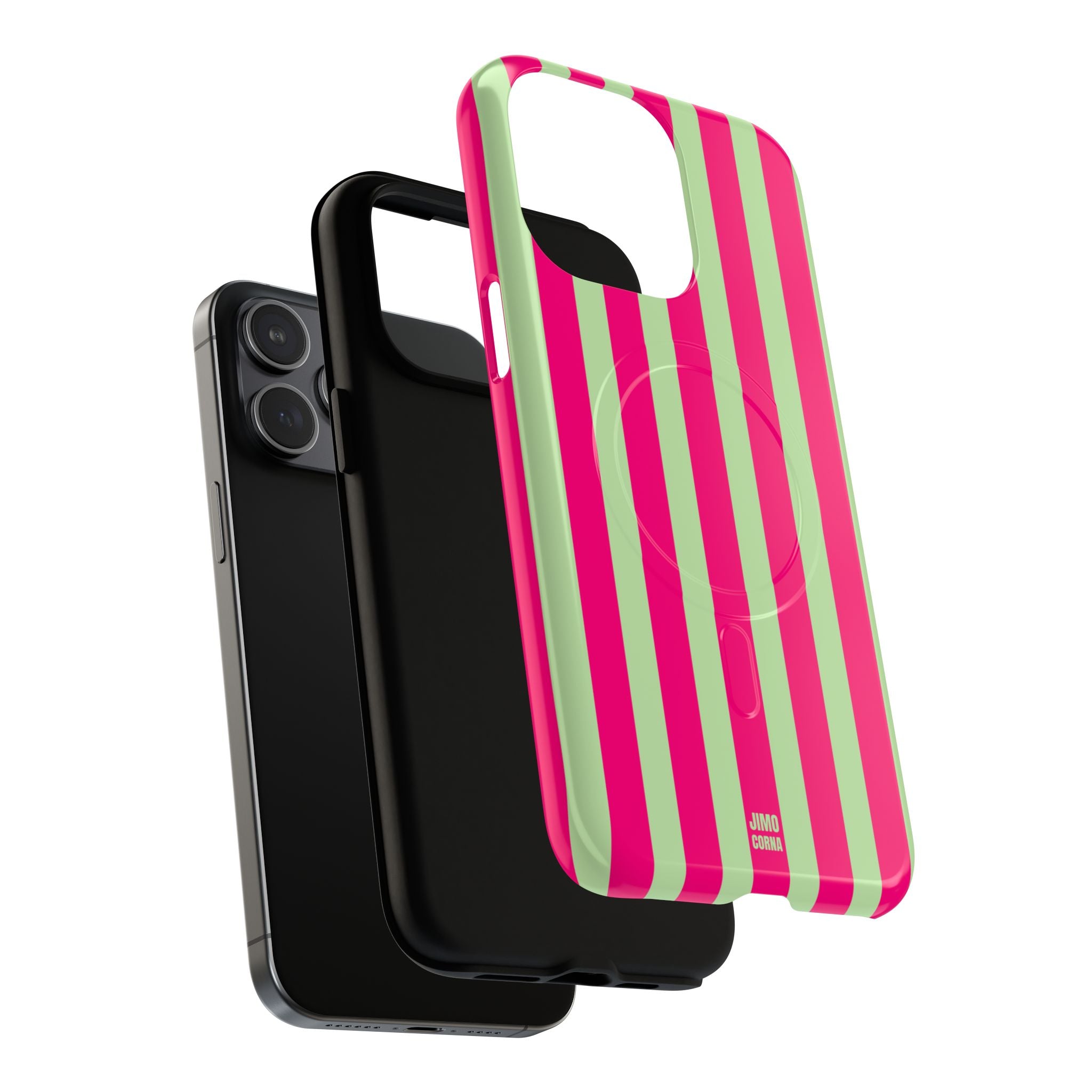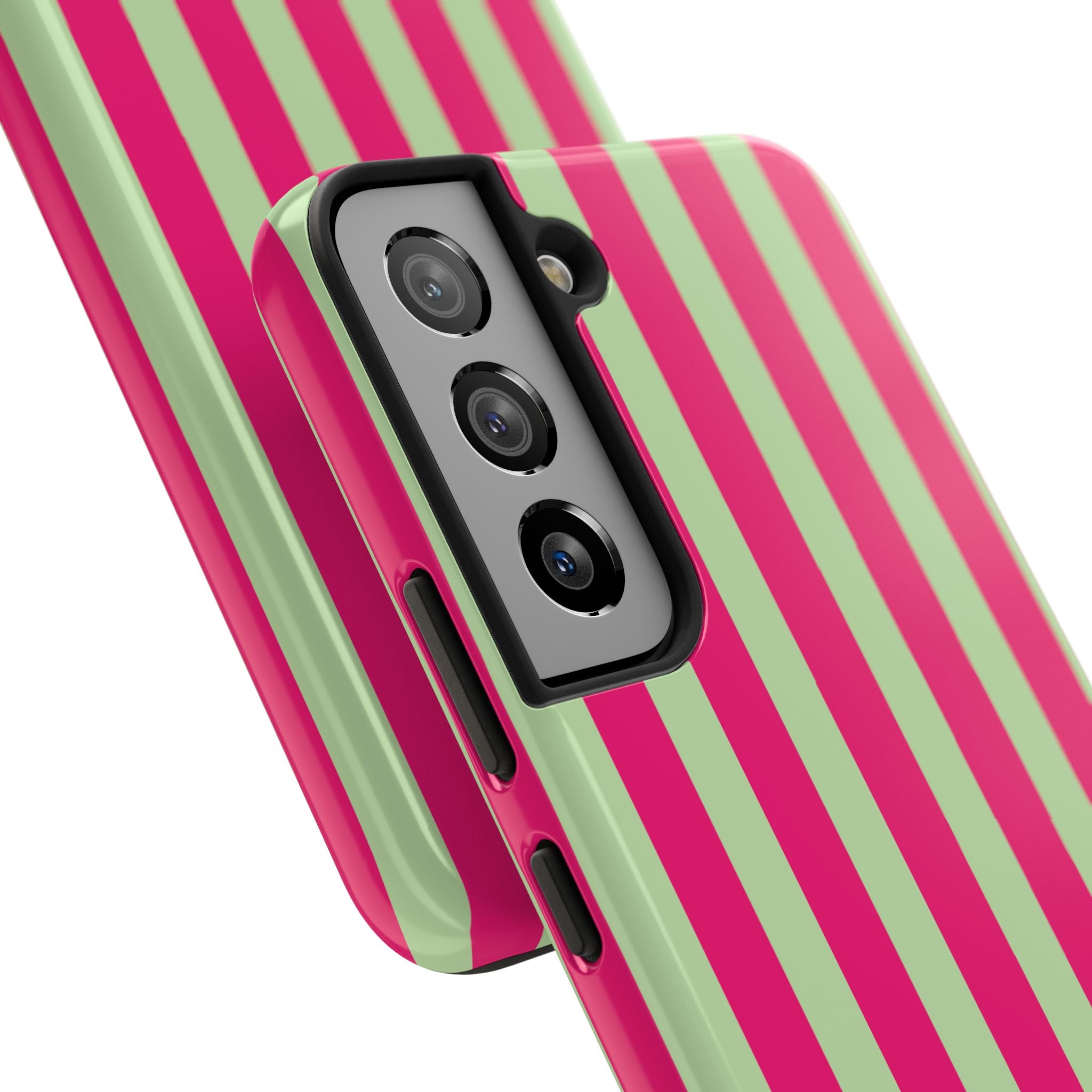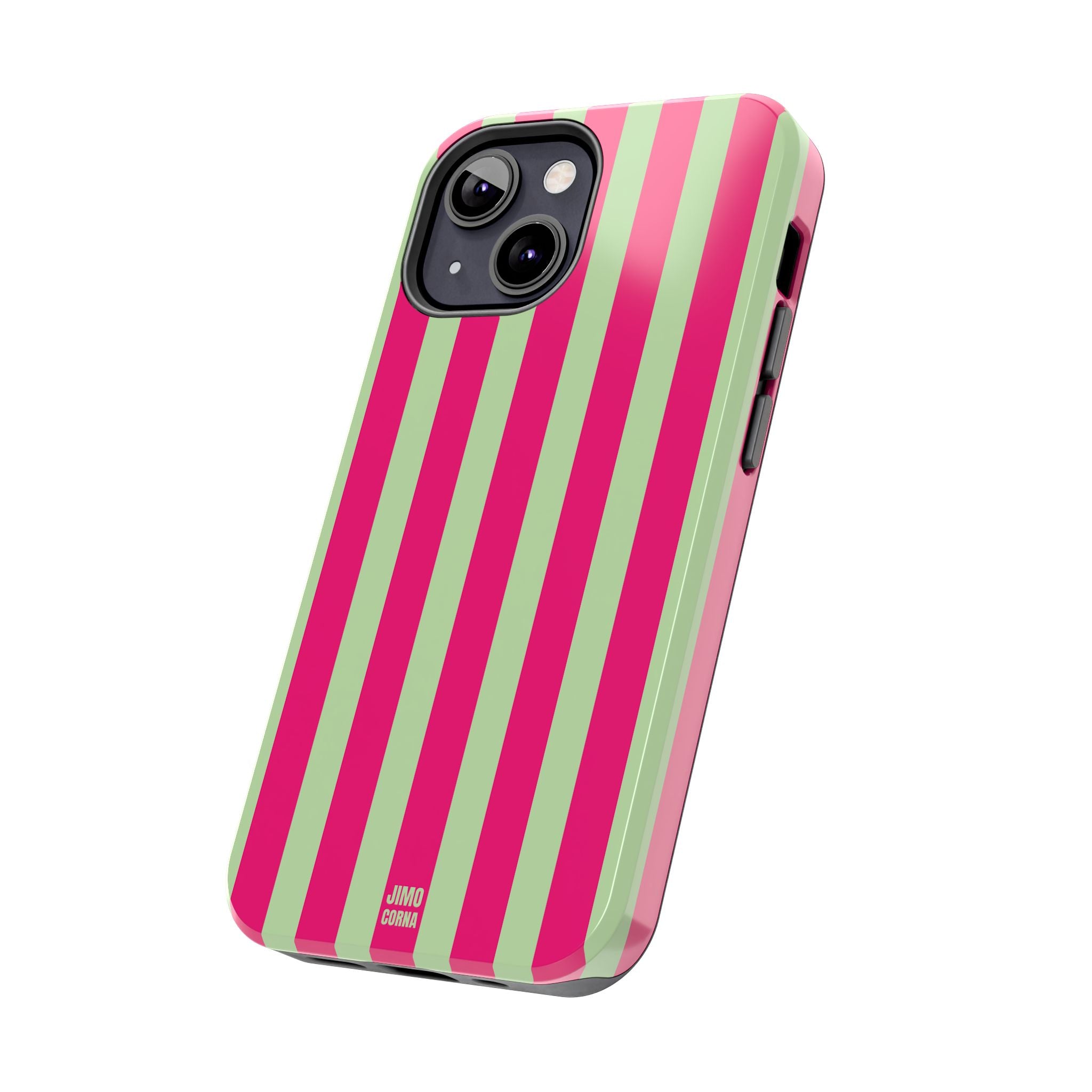 Lime Green and Pink Bold Stripes Tough Phone Case